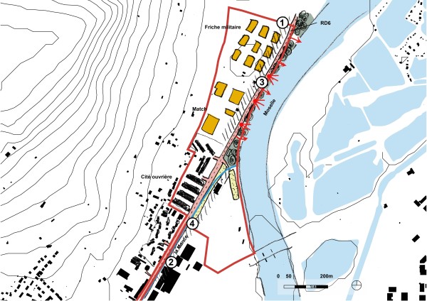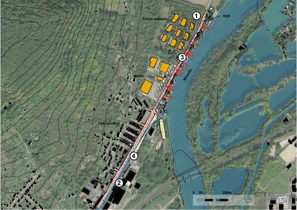 - Rendre visible la proximité immédiate avec la Moselle et ses berges (créer des fenêtres sur la rivière) et révéler la présence de la Mance et de ses abords.