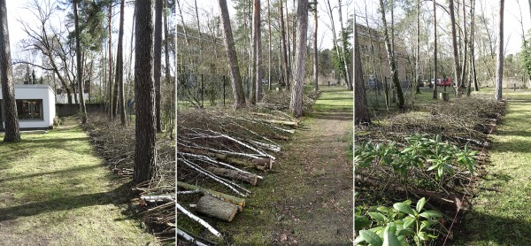 Des limites fonctionnelles, qui s’inscrivent dans les paysages où elles sont implantées, sont basées sur l’utilisation de ressources disponibles sur place et utilisent des techniques et savoir-faire typiques du «bon sens paysan» - Ramée de branches (crédit : Omnibus)