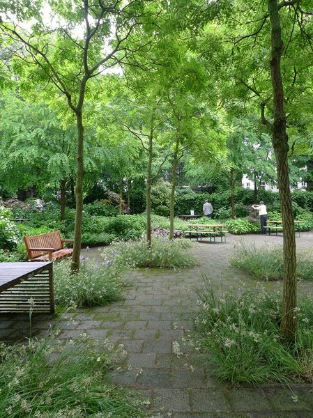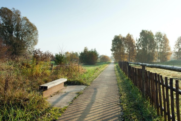 Chemins ras de sol - Trebbin (Allemagne), Chemin parc de la haute ile avec pavés enherbés au seuil des croisements, Agence hochC