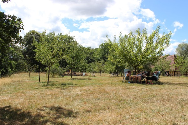 Verger de l’Écomusée de la Maison Comtoise, installation et animation des espaces de nature et de culture. (Crédits : Omnibus)