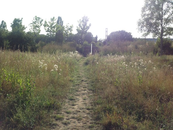 Réalisation d’un micro-relief/talus planté afin d’améliorer la transition - sonore et spatiale - entre la rue et le parc. Parc de la Seille Jean-Marie Pelt, Metz. (crédit : Omnibus)
