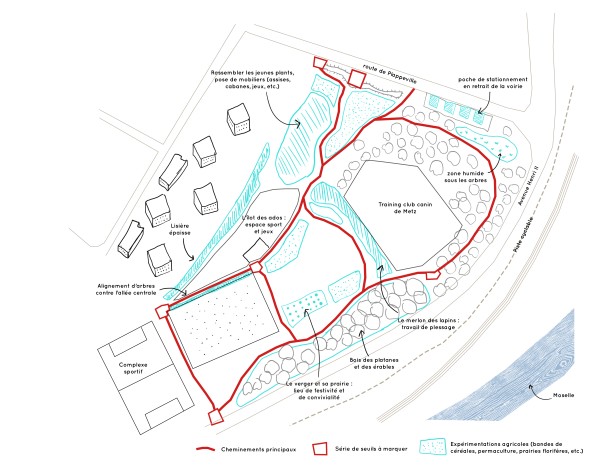 Créer un espace accessible, plan, permettant l’installation d’un aménagement progressif et évolutif pour impliquer les citoyens dans la construction de ce lieu.