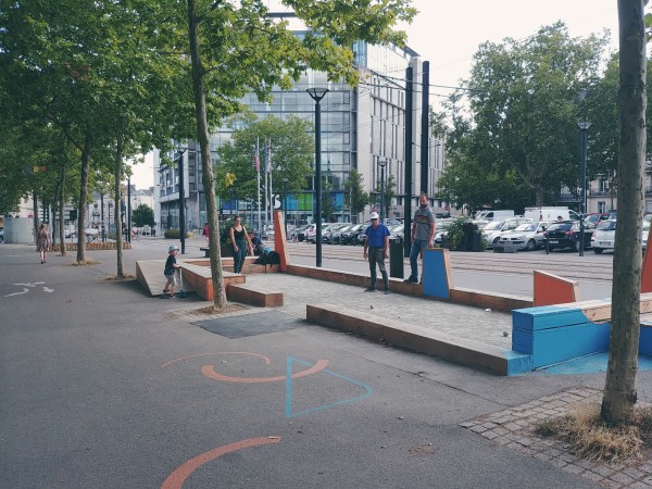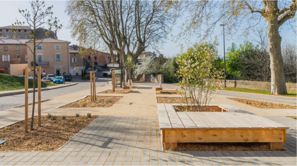 - Installer généreusement du mobilier, même simple et fait avec les futs issus d’abattage par exemple, pour accueillir sur l’espace public, inviter à être ensemble, se rencontrer à l’extérieur.