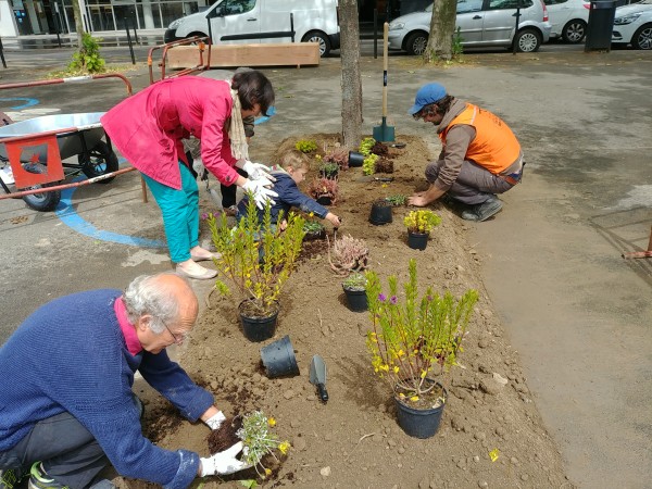 - Certains espaces publics sont parfois oubliés, délaissés. Ré-ouvrir un sol mécaniquement pour désimperméabiliser, planter quelques vivaces et arbustes, y installer un peu de compost, pailler, le faire en impliquant des habitants motivés… sont des réflexes qu’il est intéressant d’adopter ! (cf. Action transversale Transition écologique)