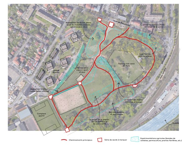 Créer un espace accessible, plan, permettant l’installation d’un aménagement progressif et évolutif pour impliquer les citoyens dans la construction de ce lieu.